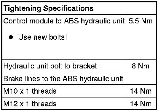 - Bolt the hydraulic unit to the control module with the new inner TORX(R) bolts supplied.