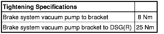 Component location of the brake system vacuum pump is located on the front of the DSG(R), in the direction of travel.