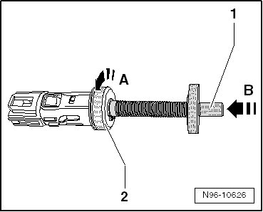 - Release puller retainers by pressing spindle - 1 - in direction of - arrow B -. Then release press - 2 - by turning slightly to left - arrow A -. Remove the puller from the outlet.