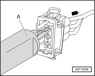 - Release contact lock using assembly tool with correct fit - A - and then pull wire with single wire seal toward rear - arrow - out of contact housing.