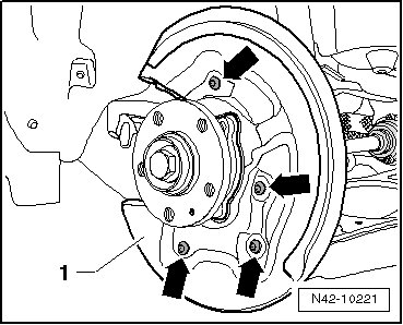 - Hold wheel bearing housing and remove bolts - arrows -.