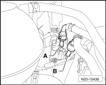 - Disconnect the connector - A - from the auxiliary fuel pump/fuel pump 2.