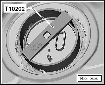 • Drain the fuel tank, if necessary using the fuel extracting device (VAS 5190). Refer to => [ Fuel Tank, Draining ] Procedures.