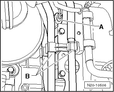 - Disconnect the connector - A - and remove the fuel hoses - B -.