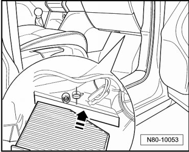 NOTE: Pay close attention to the installed position of the dust and pollen filter.
