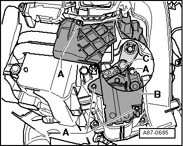 • If the temperature door lever - C - is a position that hinders access to the upper screw - A -. Change the position of the temperature door using the hot and fresh air controls; on vehicles with Climatronic (for example"Hi" setting).