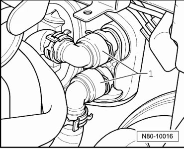 - Replace the sealing rings - 1 - coat them with coolant before installing.