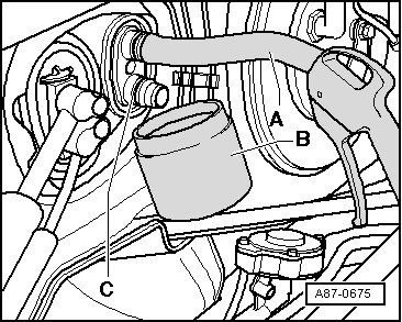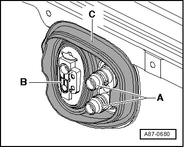 - Seal flange for coolant pipes to heater core - A - and for expansion valve (to evaporator) - B - at pass-through of grommet - C - with silicon adhesive sealant if necessary (to prevent water from penetrating).