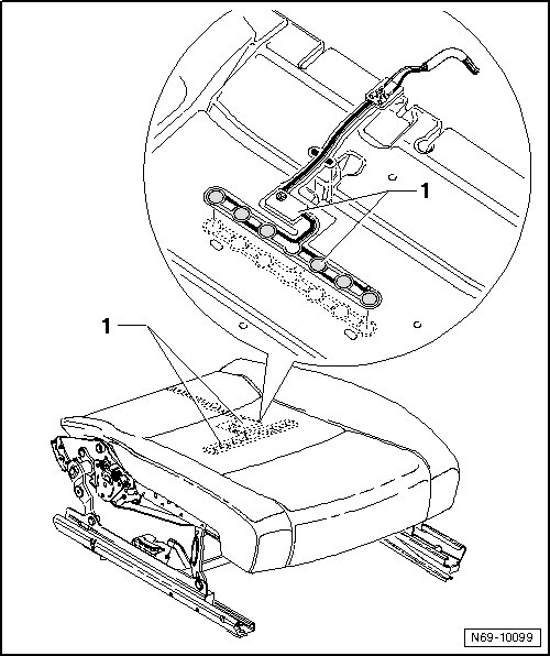 - Remove cover and cushion from front seat backrests. Refer to => [ Front Seat Pan Covers and Cushion ] Front Seat Pan Covers and Cushion