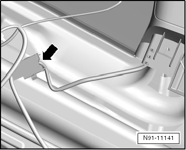 - Disconnect harness connector - arrow - in speaker wiring harness.