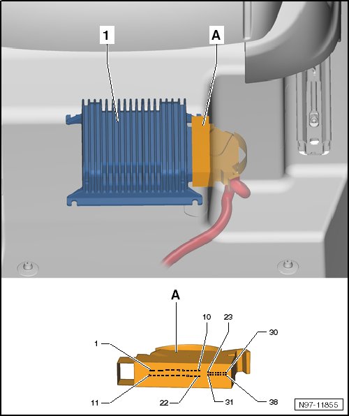 Control modules in rear part of vehicle