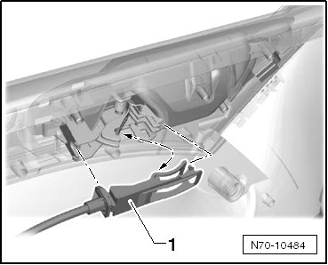 - Disengage the cable - 1 - from the interior door mechanism on the inside of the door trim panel.