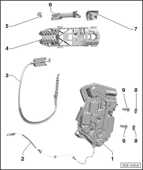 • Removing and installing, refer to => [ Door Handle ] Rear Door Handle.
