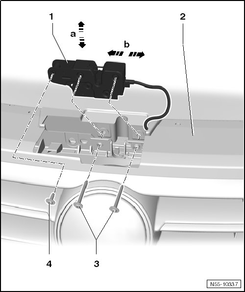 - By loosening the screws - 3 and 4 - it is possible to correct and adjust the gap dimensions - arrow b - and height - arrow a - of the hood.