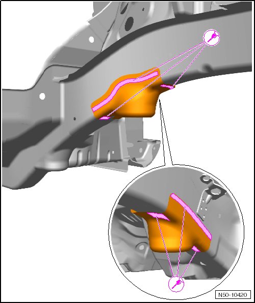 • Front retaining bracket for subframe (replacement part identification: retaining bracket mounting frame)
