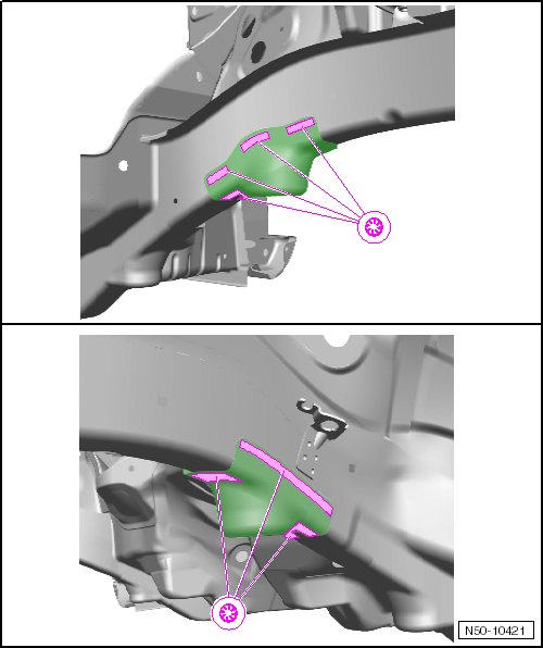 - Weld in new part; Gas-shielded arc plug weld seam.