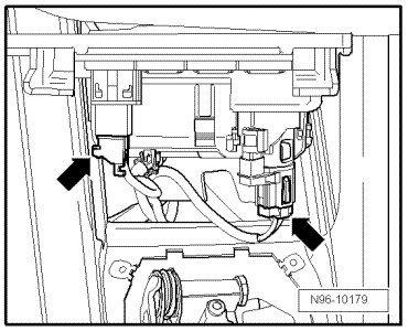 - Disconnect all connectors - arrows -, depending on the vehicle equipment level.