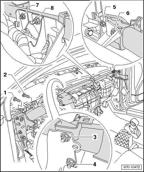 - Remove both nuts - 7 - and - 8 - (8 Nm).