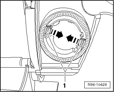 - Depress retainers - arrows - and remove mounting sleeve with bulb holder.