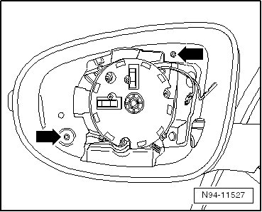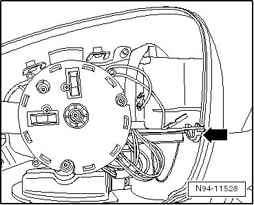 - Release the latch - arrow - and lower the mirror housing lower section slightly.