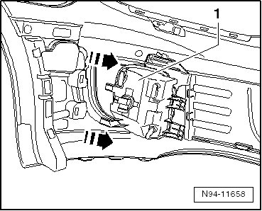 - Move the fog lamp - 1 - slightly down and pull it out of the bumper cover in - direction of arrow -.