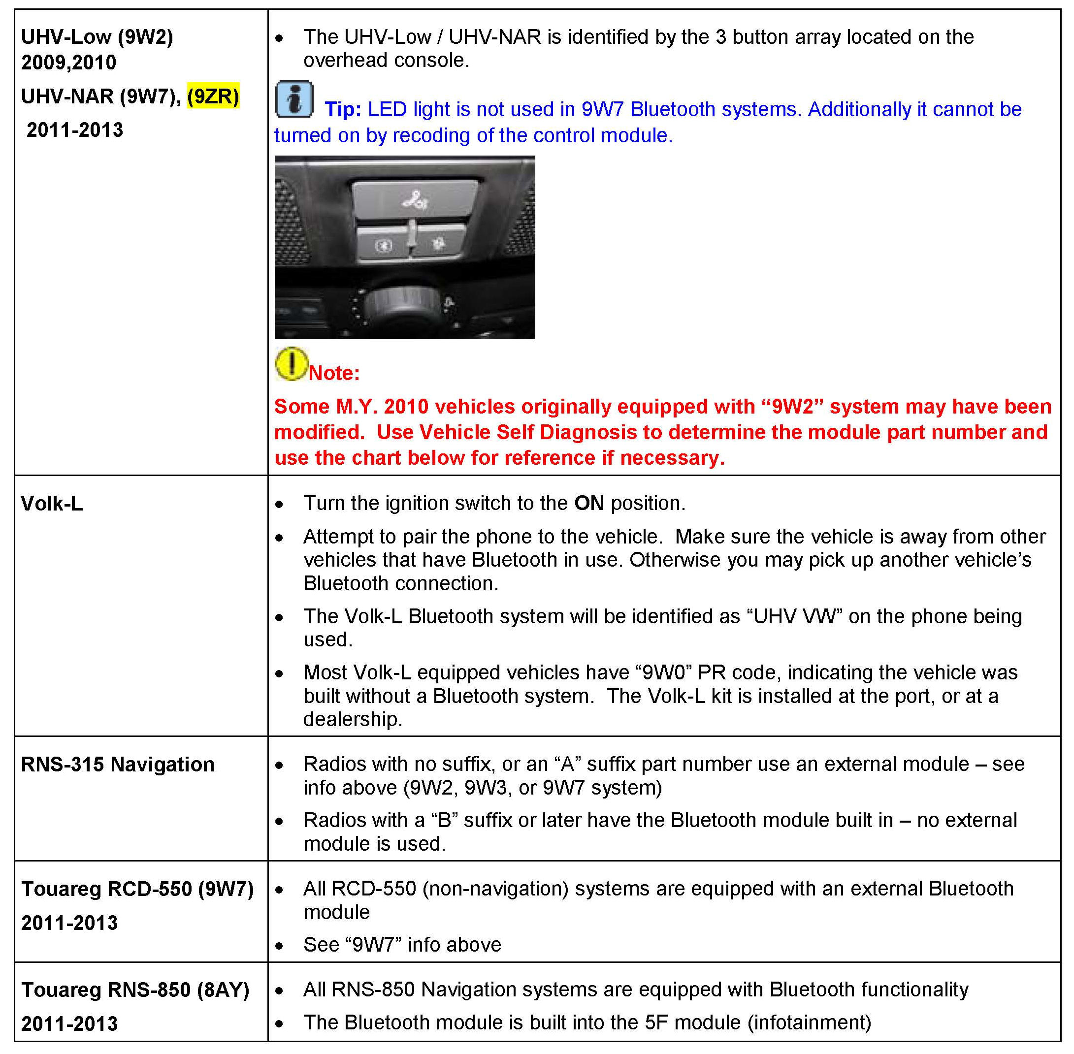 ^ UHV-NAR (9W7), *(9ZR)* Factory Option (All 2011-2013 except Routan and Touareg)
