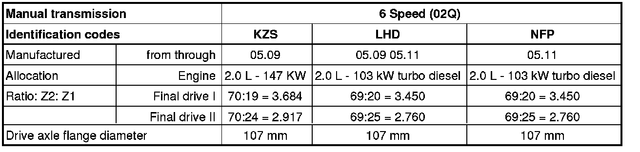 The individual gear ratios