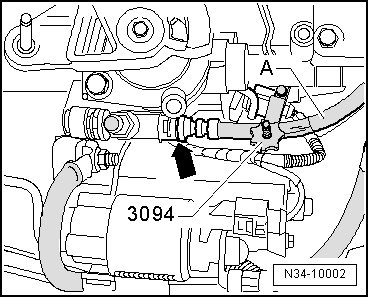 - Clamp off the hose on the hose/line assembly - A - to the clutch slave cylinder using a hose clamp up to 25 mm dia. (3094).