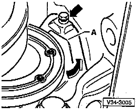 - Remove the small flywheel cover plate bolt - arrow - and plate - A -, if equipped.