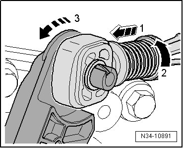 • Loosen the engine to transmission bolt - 3 - and leave it in hand tight.