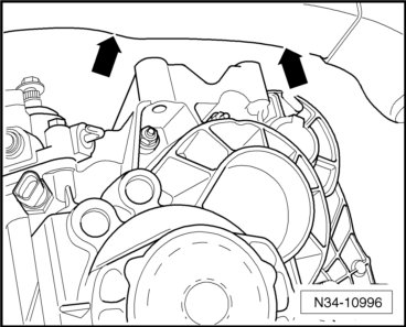 - Remove the upper engine to transmission bolts - arrows -.