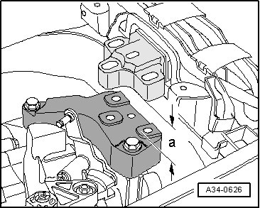 - Lower the transmission by adjusting the spindles, which are attached to the engine, approximately 40 mm - a -.