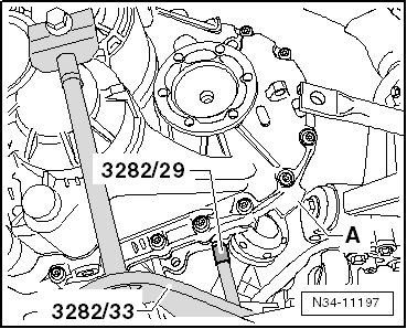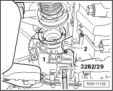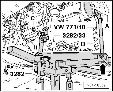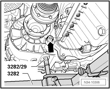 - Install the transmission support (3282) to the engine-/gearbox jack (V.A.G 1383 A).