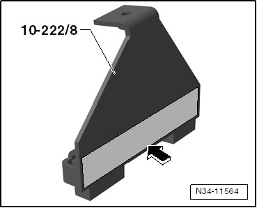 • To protect the edges of the fenders, cover both engine support feet (10-222 A/8) with cloth tape - arrow -. Refer to the Parts Catalog.