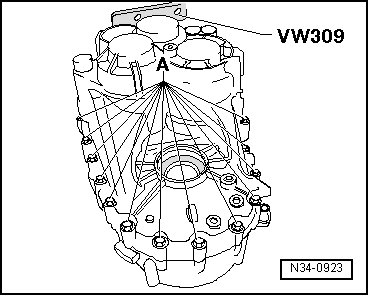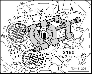 - Remove the separating tool - A - and the thrust tube (VW 455) (illustration) or the sleeve (3160) from the input shaft.