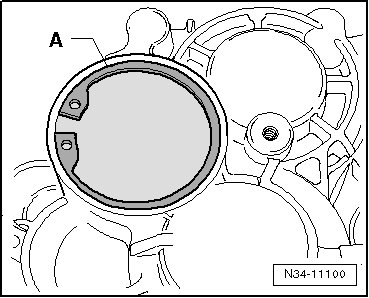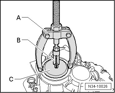 Remove the lock ring - C - from the grooved ball bearing on the input shaft/transmission housing as follows: