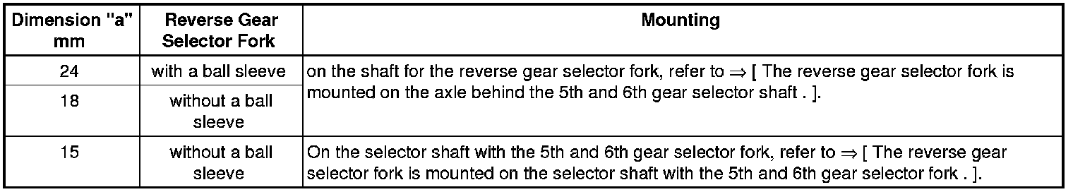 • Reverse gear selector fork differentiation. Refer to => [ Reverse Gear Selector Fork Differentiation ].
