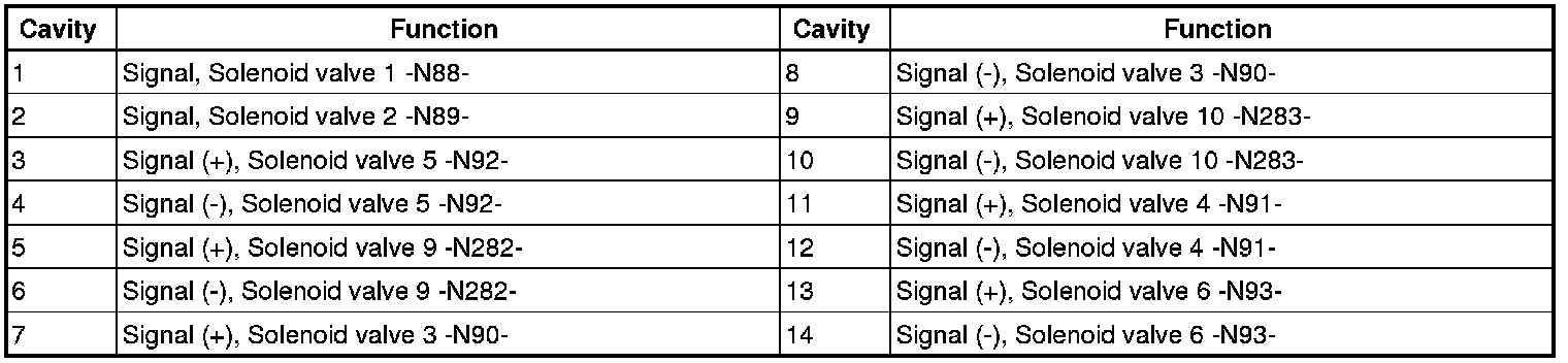 solenoids: N88, N89, N90, N91, N92, N93, N282,N283