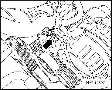Before removing ribbed belt, mark the top side and direction of travel. When installing, pay attention to correct running direction and installation position. If the belt is installed in the opposite running direction or is positioned incorrectly, the belt will fail!