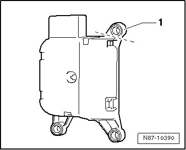 - Remove the bolt - D - to (1.4 Nm) and remove the left temperature door motor - B -.