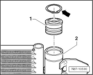 - Push the cover - 1 - down slightly and remove the circlip - arrow -.