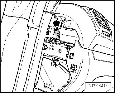 - Rotate center outlet temperature sensor - 2 -, rotate 90° - in direction of arrow - and remove from instrument panel.
