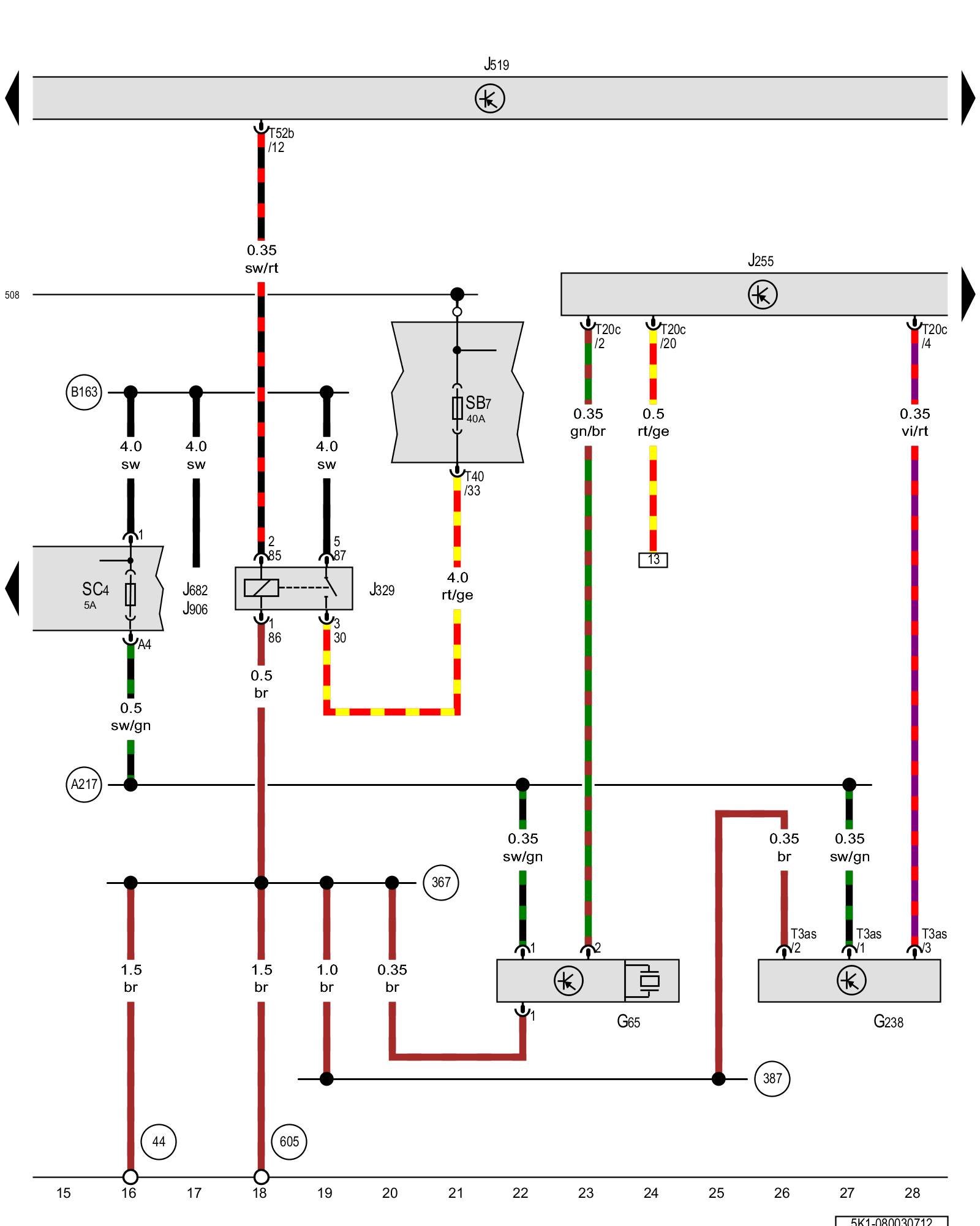 (B163) - Positive connection 1 (15) (in interior wiring harness)