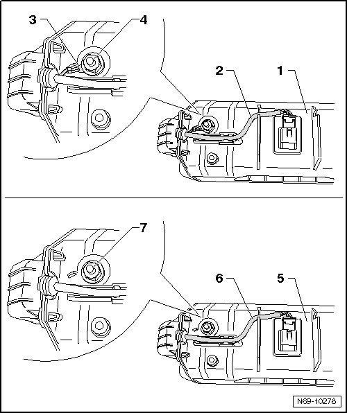 • Lengthen the ground cable as needed with suitable instruments from the Wiring Harness Repair Kit (VAS 1978) or Wiring Harness Repair Kit (VAS 1978A).