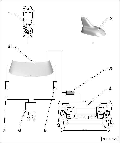 • Installed only on vehicles with telephone, navigation or auxiliary heater with remote control.