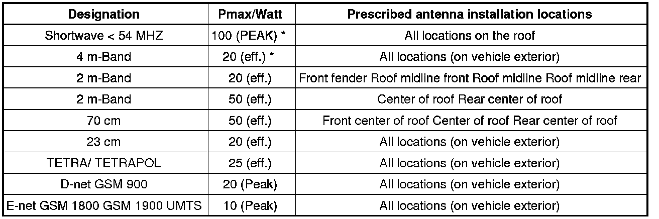 • Deviations from these guidelines (location of antenna, frequency, output) are only permitted in special isolated cases after a single-case test carried out by the EMV center of VW AG in Wolfsburg.