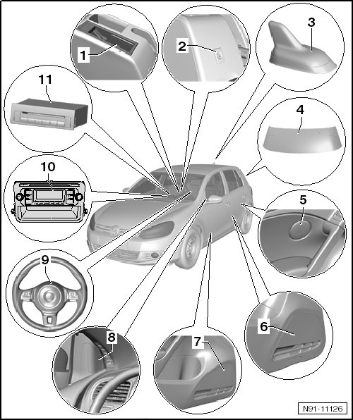 • optional "CD changer" or "multi media system control module". It is not possible to have both systems together because both systems have the same installation location.