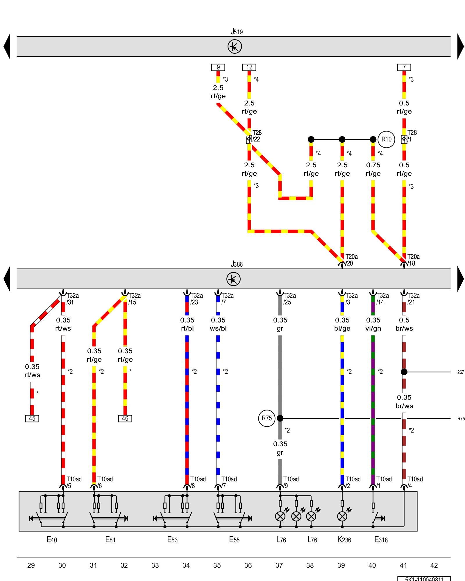 E40 - Left front window regulator switch Driver Side Master Window Switch -E40- , -E81- , -E53- , -E55- , and -E318-