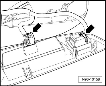 When removing and installing components in a visible area (switches, covers, trim, etc.), mask off the areas at which a prying tool ( (VAS 3409) , screwdriver) will be positioned, using commercially available adhesive tape.