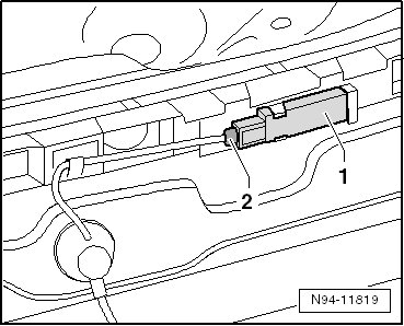 - Disconnect the connector - 2 - and remove the access/start authorization antenna in rear bumper - 1 -.